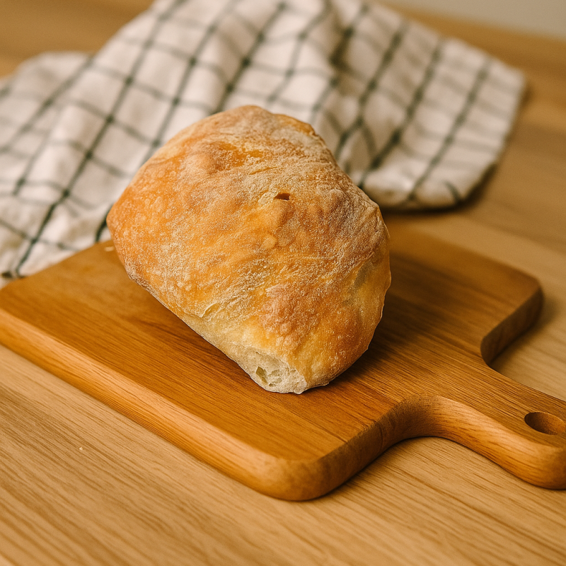 Włoska pszenna bułeczka. Delikatna w środku i chrupka na zewnątrz. Swój wyjątkowy smak nabiera dzięki całonocnej powolnej fermentacji. Idealnie wchłania wszystkie sosy i dipy oraz jest podstawą pysznych kanapek.